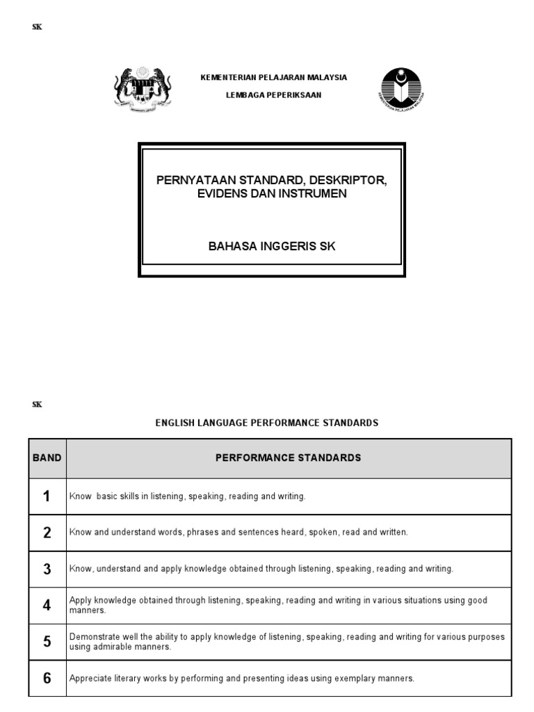 Standard Prestasi Bahasa Inggeris Sk Tahun 1 Kssr Terbaru Pdf Indonesian Language Alphabet