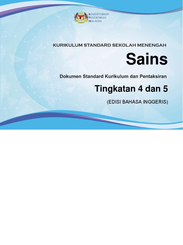 Dskp Kssm Science Form 4 And 5 Versi English Pdf